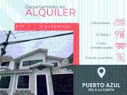 ...Puerto Azul Precio de Alquiler $ 1.200,00 más alícuota Alícuota $ 52,00 Acogedor departamento con ambientes funcionales y confortables en urbanización segura y con estilo único. Rodeada de áreas verdes donde podrá realizar actividades recreativas y d...